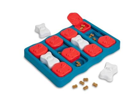 “I love the Nina Ottosson toys,” Tu says. “They come with a ‘difficulty rating’ to help pet parents select what they need.” For example, this option is rated level three (out of four), meaning it’s more advanced. Just fill the compartments with food, then cover them. Your dog will have to remove the bones, flip open the lids and manipulate the sliders to get to the goodies inside.