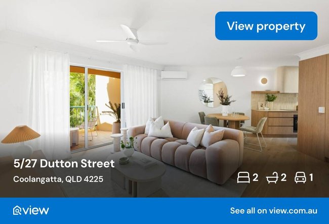 The pair’s three-month “flip” of a beachside apartment at 5/27-29 Dutton Street in Coolangatta sold for $1.35 million with LJ Hooker Southern Gold Coast listing agent Erin King, adding $430,000 in value in nine months.
