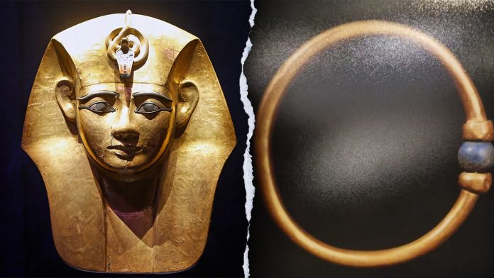 Egyptian authorities recently announced the theft of a gold and lapis lazuli bracelet once owned by Pharaoh Amenemope. (Chesnot/Getty Images; Egyptian Ministry of Tourism and Antiquities)